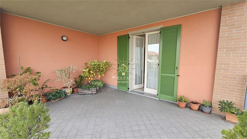 La zona Giorno, con accesso diretto al terrazzo è composta dall’ingresso con disimpegno, ampia cucina abitabile e un soggiorno spazioso con zona pranzo, mentre la zona Notte raggiungibile mediante un comodo corridoio è formata dalla camera matrimoniale e una seconda camera (attualmente adibita a lavanderia, ma perfetta come cameretta) collegate da un balcone esterno, a completare troviamo il Bagno padronale con vasca.