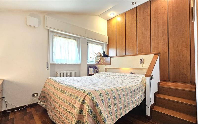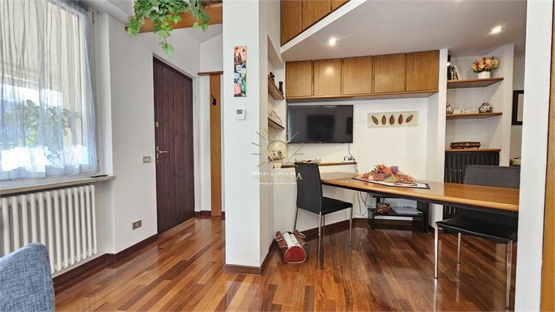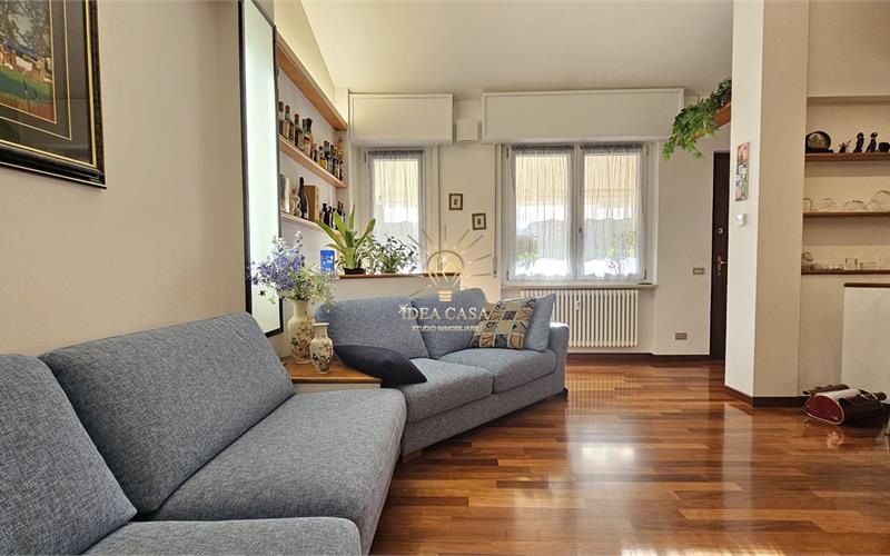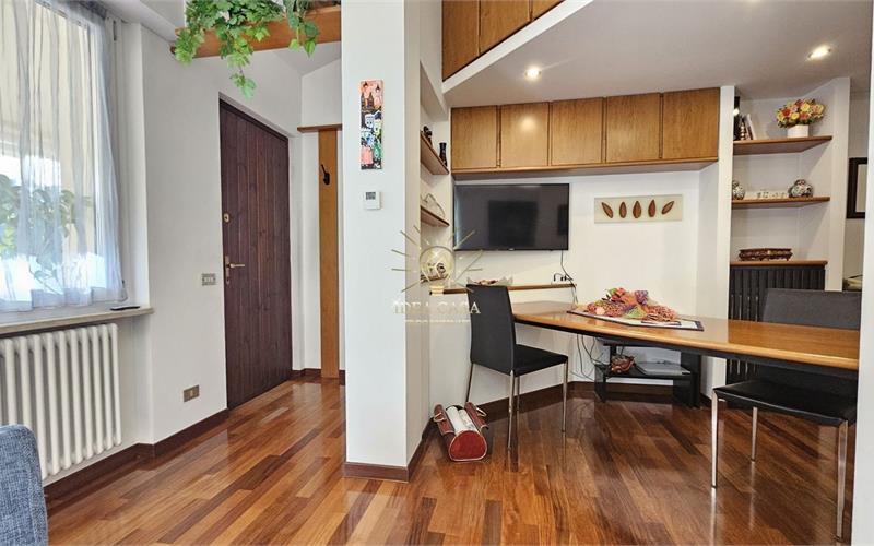 L’ingresso tramite terrazzino privato conduce alla zona living, dove domina il soggiorno caratterizzato da un pregiato pavimento in parquet. La cucina è separata e funzionale e il bagno è di generose dimensioni.