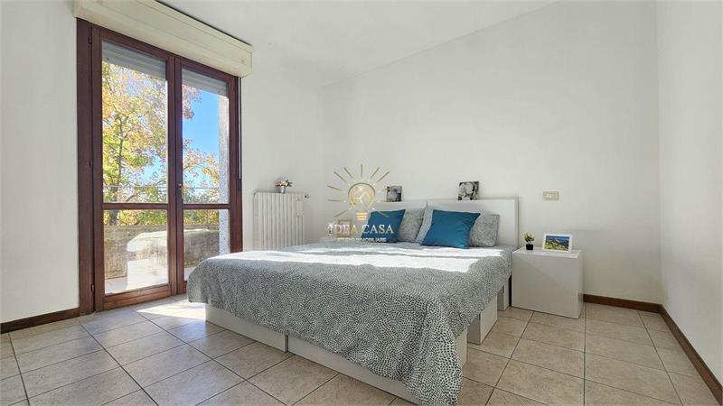 Immerso nel verde, con vista aperta sui campi, vanta una fantastica esposizione a Sud che inonda di luce ogni ambiente. Goditi momenti di relax sul tuo terrazzo e giardino privati, dalla quale si accede mediante dei grandi finestroni ubicati nella zona giorno. Due accoglienti camere matrimoniali e un ampio bagno con vasca completano la proprietà.