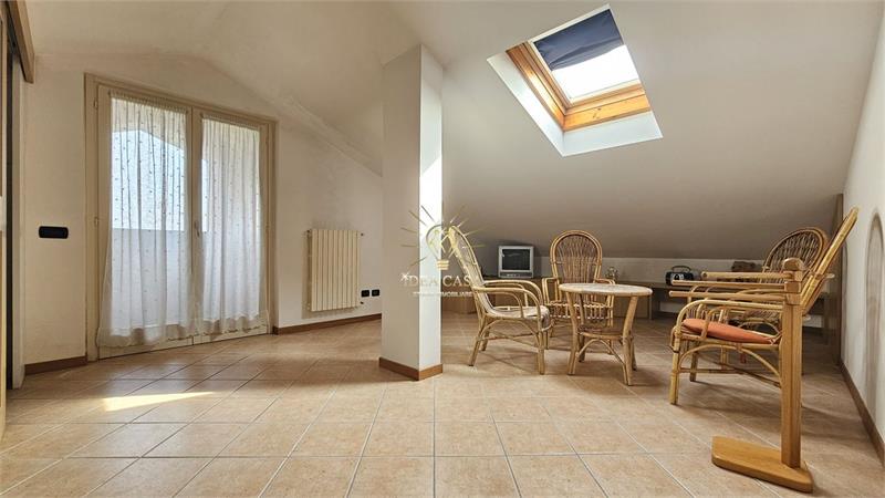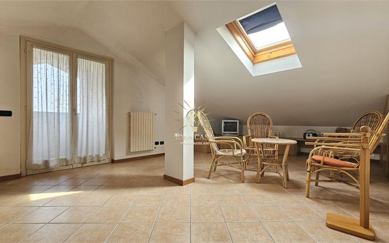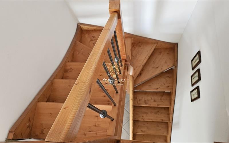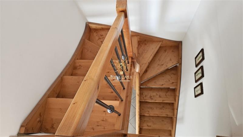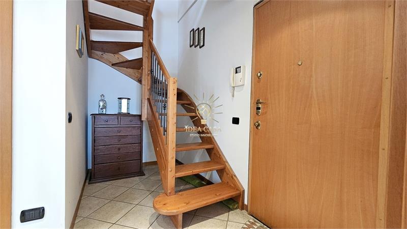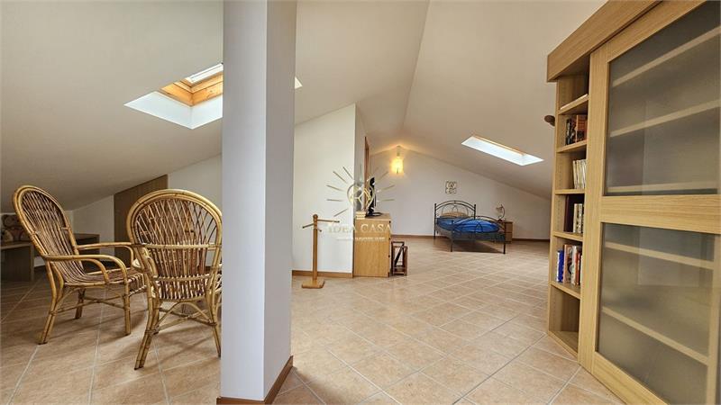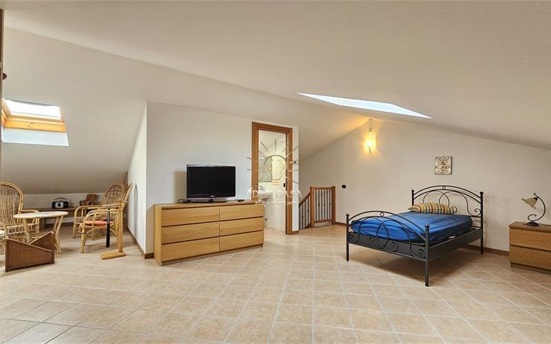 Attraverso una pregiata scala in legno massello si accede allo spettacolare sottotetto. Uno spazio versatile dotato di un ulteriore balcone loggiato, perfetto come locale hobby, area relax o ulteriore zona notte.