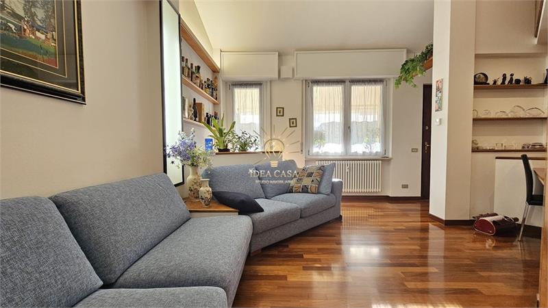L’ingresso tramite terrazzino privato conduce alla zona living, dove domina il soggiorno caratterizzato da un pregiato pavimento in parquet. La cucina è separata e funzionale e il bagno è di generose dimensioni.